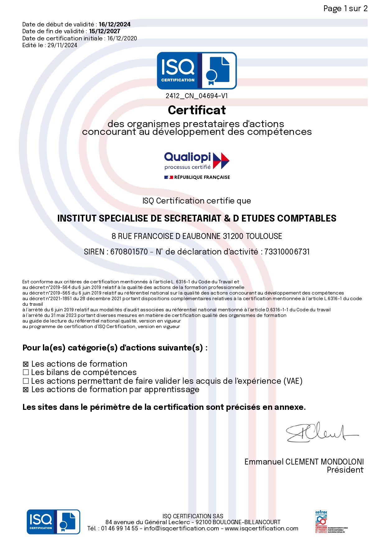 Notre centre est certifié Qualiopi ainsi que toutes nos formations !